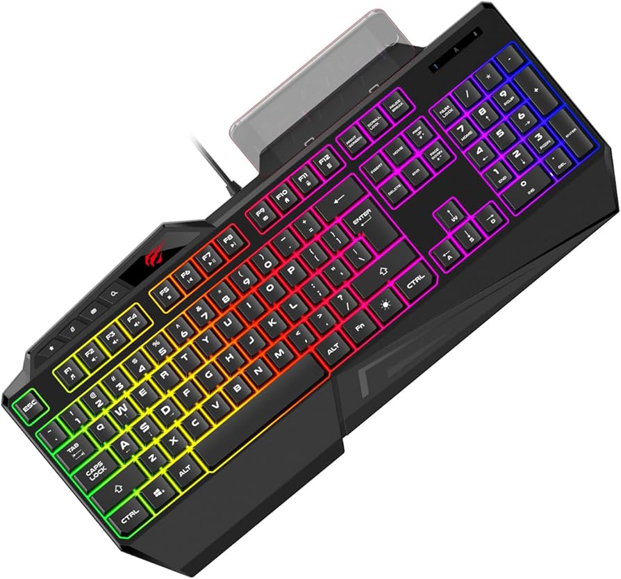 HAVIT KB488L MULTI- FUNCTION KEYBOARD -104 Keys with Rainbow Backlit & Wrist Rest