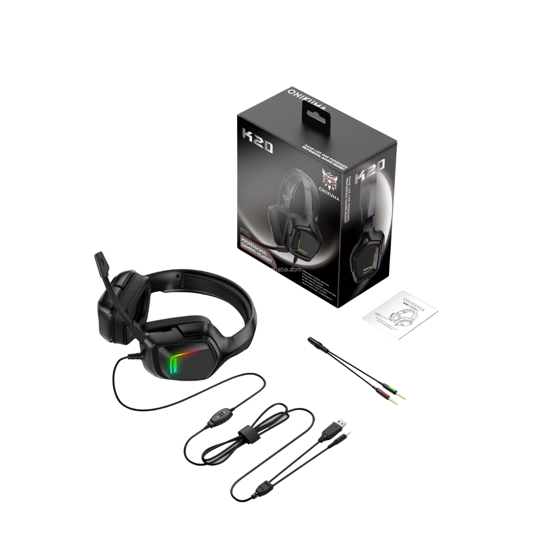 Onikuma K20 Wired Gaming Headsets With Microphone Rgb Light